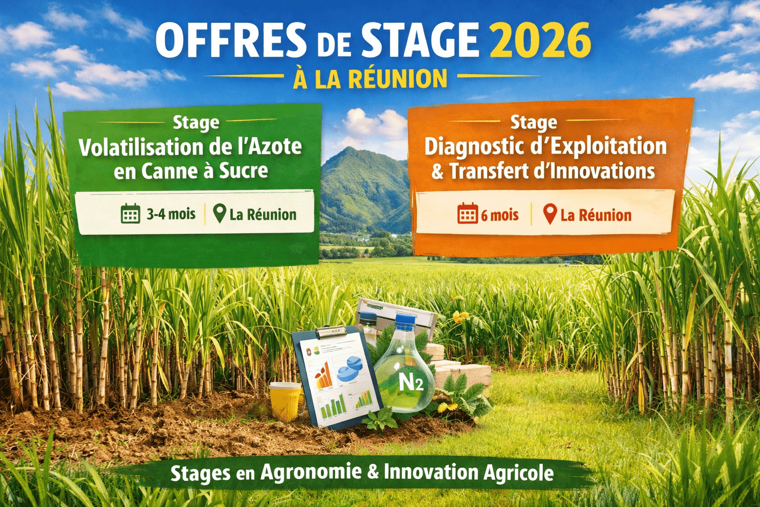Deux offres de stage sont proposées en 2026 à La Réunion, au sein d’eRcane, en partenariat avec des organismes de recherche. 1. Stage – Volatilisation de l’azote en canne à sucreCe stage portera sur l’étude de la volatilisation de l’azote en culture de canne à sucre....