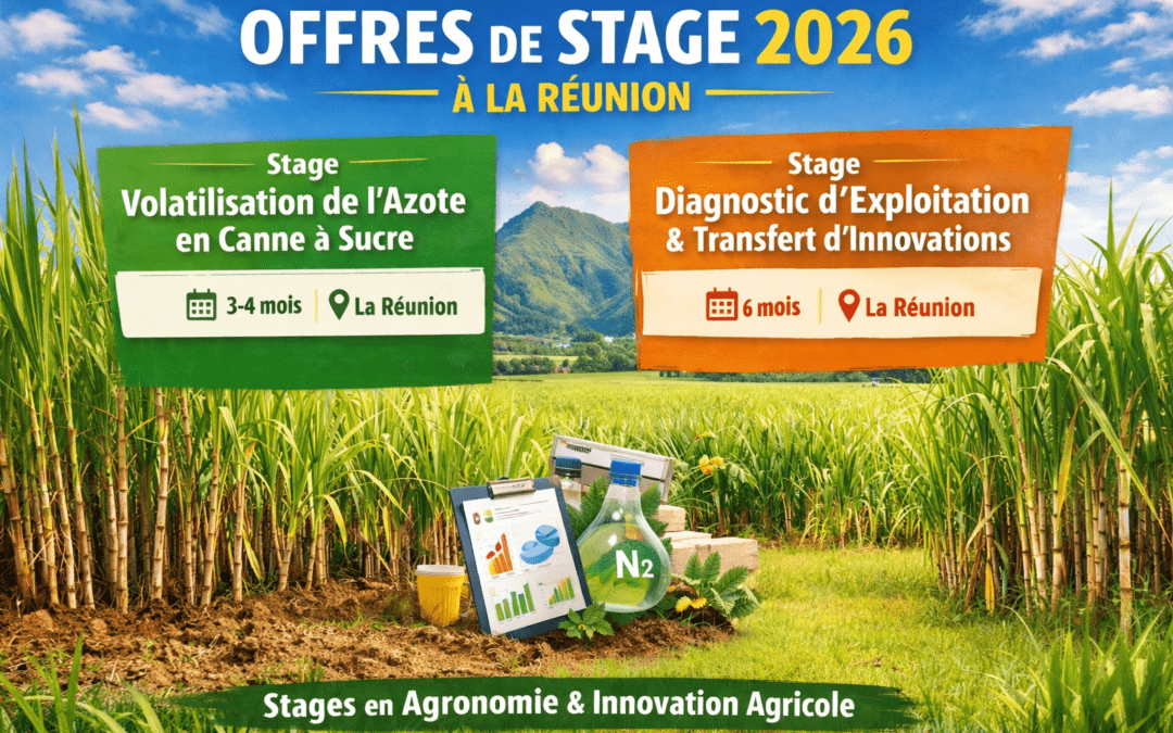 Offre concernant la volatilisation de l’azote (eRcane – Cirad – CTICS) :https://coatis.rita-dom.fr/osiris/files/OffreDeStageRitaCanneLaReunion2026_fichier_ressource_offre-de-stage-volat_cas_v2026.pdf